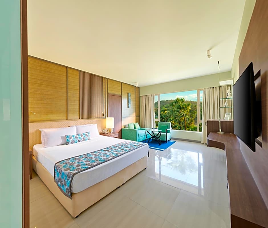 This suite has a balcony, mini-bar and tile/marble floor. The Balcony door would remain closed as per the management’s decision during Monsoon season.
